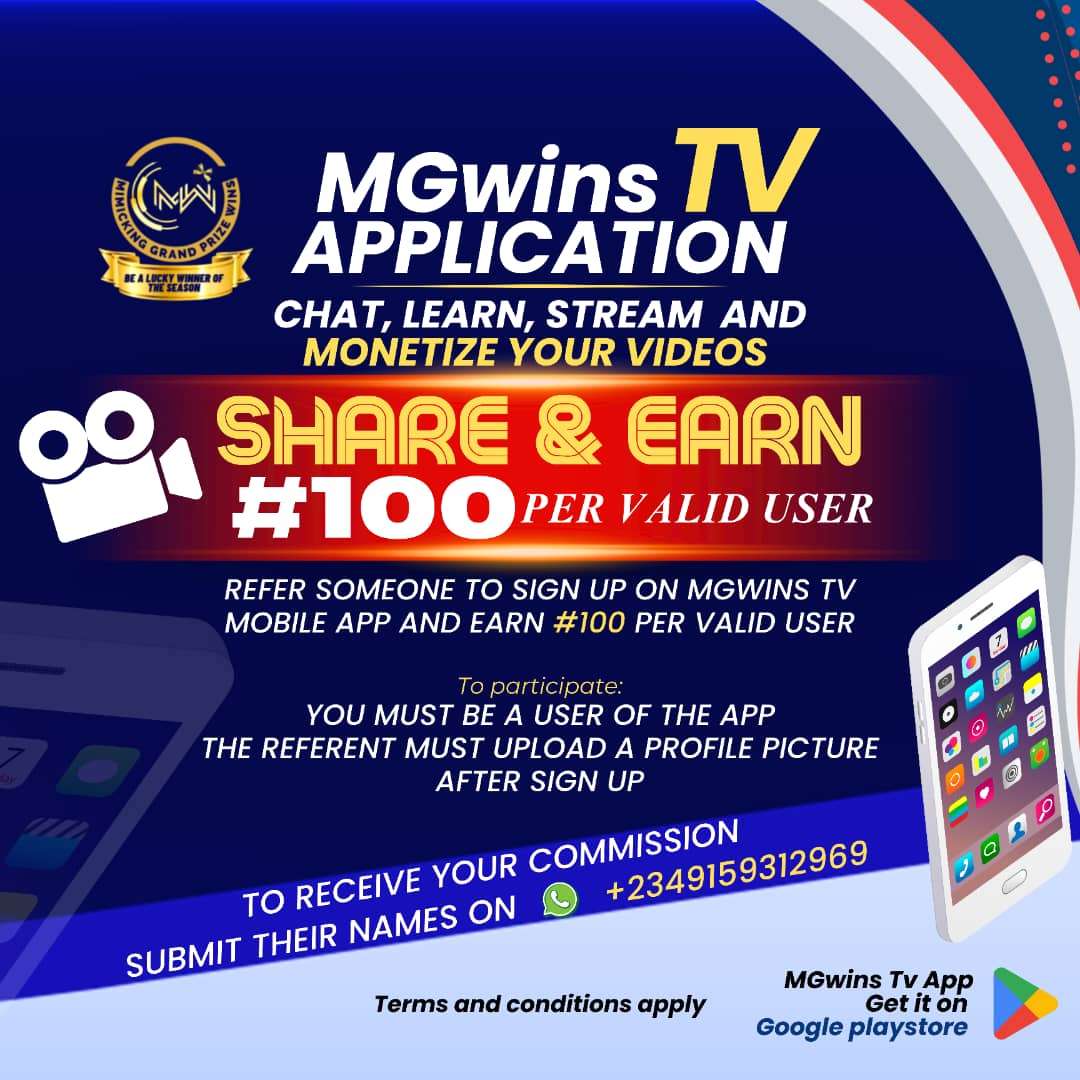 Mimicking grand prize wins is an entertainment company that helps content creator to monetise their content with fewer criteria through our mobile application named "MGwins Tv" compared to other social media platforms. The App has been designed like Tiktok to be easy to use for everyone.